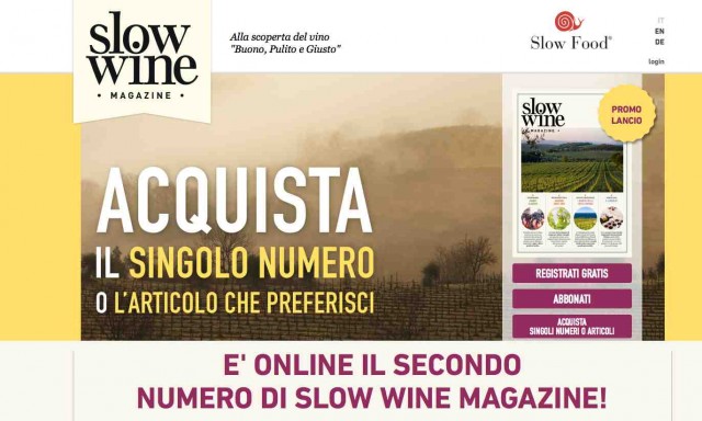 Ma veniamo alle altre novità che vi proponiamo. La prima è che vi diamo la possibilità di acquistare il singolo articolo (1, 49 €) e il singolo numero (3,99 €). Poi è finalmente online anche la versione web di Slow Wine Magazine, cosa che dà la possibilità anche di lettura più agevole da computer e cellulari. Chiudiamo dicendo che per un’intera settimana tutti i prezzi che pratichiamo sono quelli per i soci Slow Food, con sconti superiori al 30%. Ma vi dovete affrettare, il tempo scorre rapido!