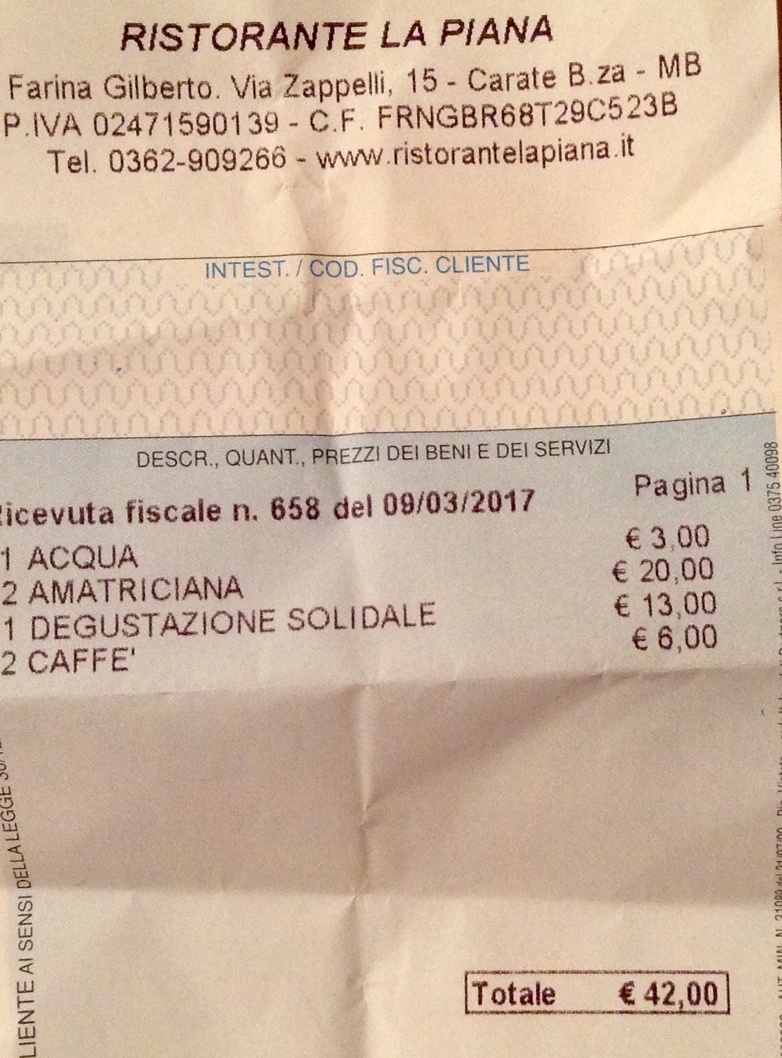 La Piana, la ricevuta di ieri sera e il messaggio nella bottiglia trovato stamattina navigando…