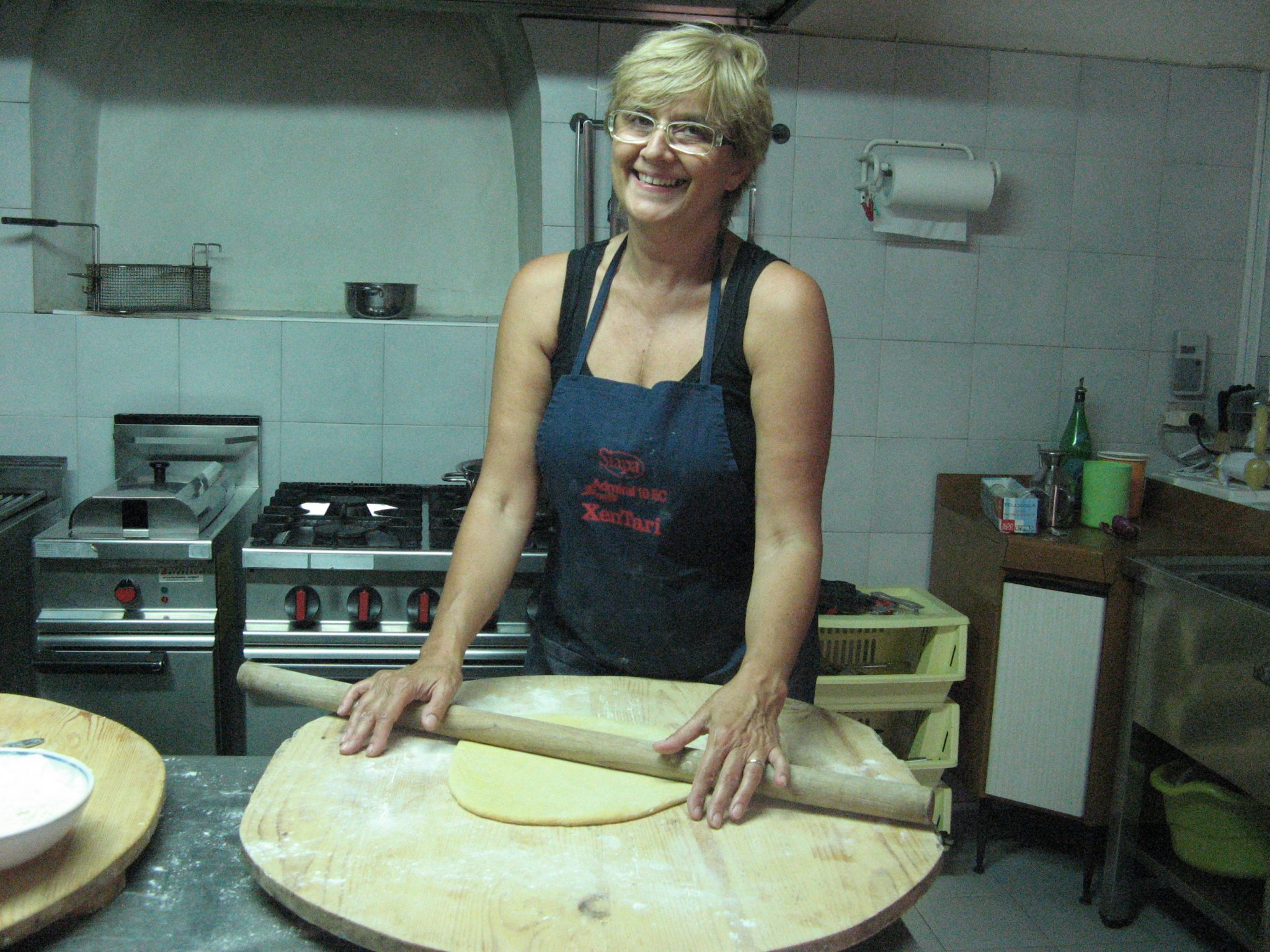 Lucia ci ha preparato anche delle profumatissime rondelle di cipolla in tempura e le pizzelle e’ raudinio, pizzette fritte di farina di granturco, molto utilizzata nelle cucine contadine, mentre la farina bianca era destinata ai giorni di festa o agli ammalati, ed a tal proposito Luigi ci ha ricordato un simpatico vecchio detto locale: sta a pan’ e gran’, sta a pane di grano, in riferimento ad una persona non in salute.