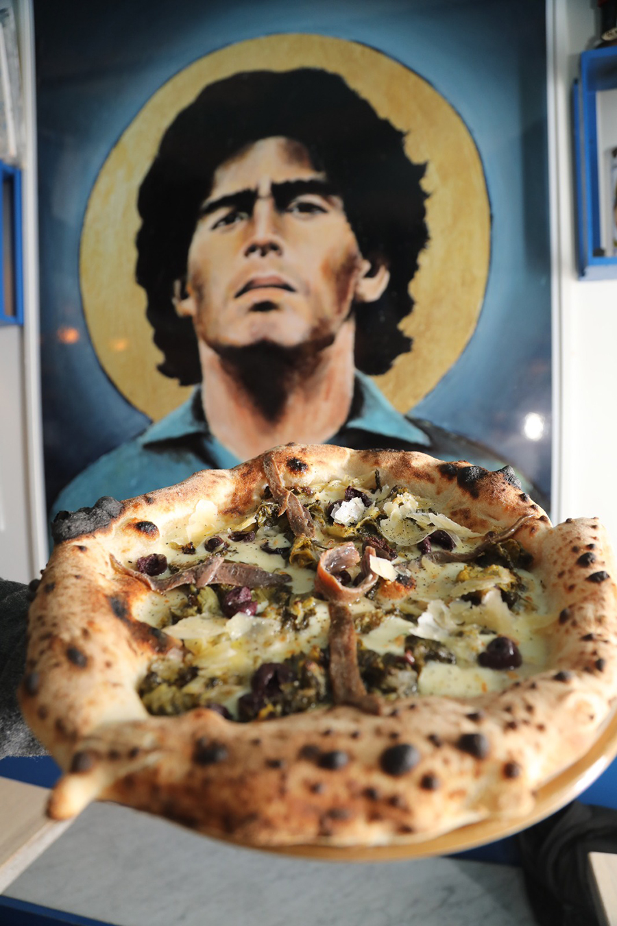 La Margherita è la pizza che più lo rappresenta, oltre alla “Marinara Starita”, condita con San Marzano DOP, datterini, alici di Cetara, origano organico siciliano, olio EVO siciliano, aglio e pecorino bagnolese. “Mi ispiro molto a Don Antonio Starita, di cui ho una profonda ammirazione”, continua con orgoglio Iovine.
