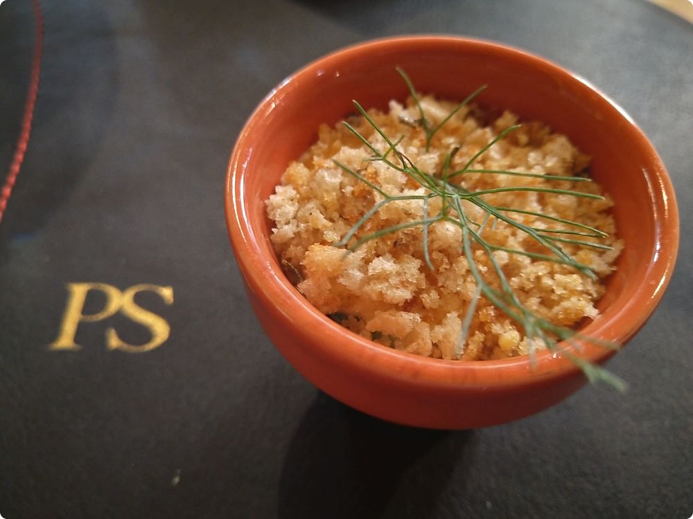 Del menù carne ho apprezzato particolarmente due piatti: fregola piccione e limone, il cinghiale accanto al cipresso; ho ritrovato anche due piatti storici – terrina di fegatini, pancia e guancia – del vecchio PS ristorante.
