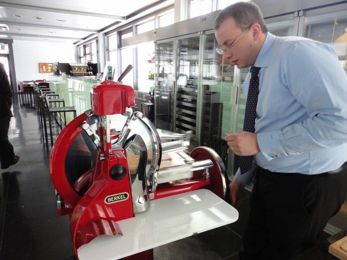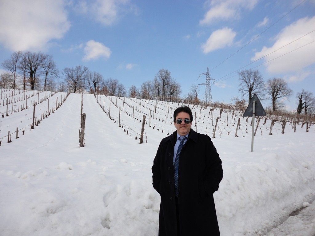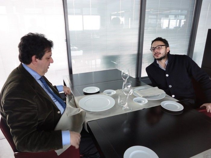 Non credo che sia andata proprio così, piuttosto, la prima uscita nella terra dei lupi dopo le copiose nevicate, credo dipenda più dall’attaccamento del “nostro”ai vini e ai prodotti di questo territorio e..soprattutto ad altre bellezze made in Irpinia, vero Annarita? Ma veniamo a noi…fattoci largo tra le montagne di neve accumulate ai margini della strada, arriviamo a località Cerza Grossa di Sorbo Serpico dove ha sede la prestigiosa cantina dei Feudi di San Gregorio, ma il nostro obiettivo di quest’oggi, non è la cantina ma il ristorante Marennà. Chiamato così in omaggio al territorio e al suo lessico dialettale. ” ‘A marenna” era una sorta di colazione di metà mattinata che i contadini usavano tenere dopo aver già svolto buona parte del lavoro giornaliero, infatti sembra che etimologicamente la parola derivi dal latino “merere”che significa, appunto, meritare. Ad accoglierci il gentilissimo e giovanissimo Antonio Capaldo, presidente della società, chiamato a tale compito nel 2009, dopo già circa dieci anni di esperienza all’estero, nella finanza (Lazard) prima, e nella consulenza strategica (Mc Kinsey) dopo. Ci affida per un attimo nelle mani di Angelo Nudo, maitre del Marennà, nonché esperto sommelier e grande competente di formaggi e salumi, che “al volante” di una meravigliosa Berkel d’antan ci fa fare dei “giri” papillosi con una meravigliosa ricotta affumicata e stagionata e un ottimo guanciale di “maiale pesante”(l’ho riconosciuto dallo spessore), il tutto annaffiato dalle bollicine selossiane del Dubl.