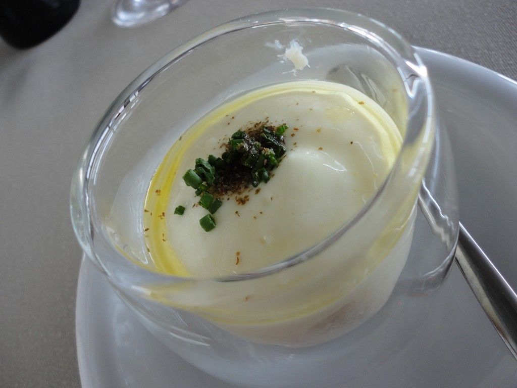 Cinture di sicurezza allacciate…si parte!!! ” Per cominciare”… Paolo ha chiamato così l’entrèe quasi liquida, ma molto densa e a dispetto dell’ora (circa le 13,00) ribattezzata Cappuccino di baccalà e patate. La sapidità del baccalà in combattimento con la tendenza dolce delle patate…scintille che sprizzano dappertutto!!!