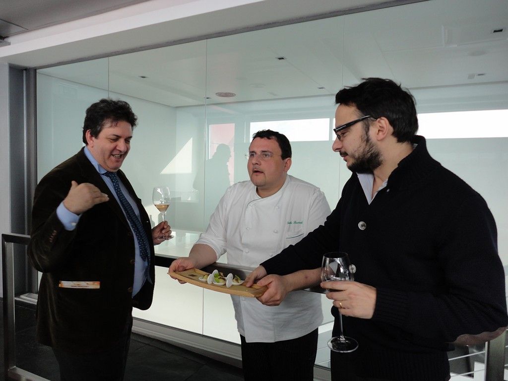 da sx: Luciano Pignataro, Paolo Barrale, chef di Marrennà, e il presidente di Feudi, Antonio Capaldo