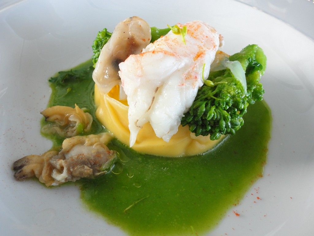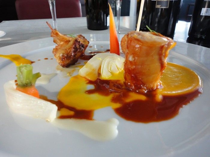 Così ha chiamato questo piatto, lo chef di Marennà, in un simpatico gioco tra prodotto e sua alimentazione, tipo per esempio il maiale con le mele. La prima cosa che colpisce di questo piatto, ovviamente, è la bellissima cromaticità, non a caso persino nella scheda di abbinamento cibo-vino dei sommelier è previsto un valore da assegnare all’aspetto visivo del piatto, e per me questo piatto raggiunge il massimo della scala dei valori. L’altra componente fortemente positiva è l’utilizzo di molte parti del coniglio. A cominciare dalla sella con relative costine, per finire all’involtino di pancia. Il tutto ben amalgamato con la salsa al limone, il finocchio e gli aromi vari.