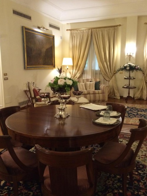 Nelle sale, nelle stanze, nell’ingresso, si sente la mano femminile. La proprietaria Paola Savarese segue direttamente la gestione del Palazzo che a fronte strada ha Il Marzialino, winebar più veloce dove si mangiano sfizi e qualche buona carne.