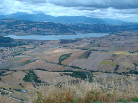 Dalla rupe di Cairano si scorge un bel pezzo di Irpinia. Grano e foraggio che dai piedi dello strapiombo, collina dopo collina, arriva fino alla Sella di Conza sulla sinistra e fino a Montella dritto davanti a me. La catena del Terminio/Tuoro è lontana, eppure si vede, imponente e grigia. Siamo nella zona che fiancheggia il fiume Ofanto per arrivare fino al Vulture. Non esiste vigna, soltanto qualche perfetto filare davanti alle case dei contadini. Se facessi vedere questo panorama ad un Francese e gli dicessi che l’Irpinia è TERRA DI VINO, mi sputa in faccia. L’unico liquido ammirabile è limpido e pulito. Quello dell’invaso che macchia di azzurro il terreno. Acqua. Poi, più nulla. Perdonate, dimenticavo il silenzio. Dalla tomba dei rumori e dei suoni si sveglia uno zombi, sembra il cupo incedere di una macchina con la gomma bucata. Nasce da lontano e si espande fino ai nostri piedi.