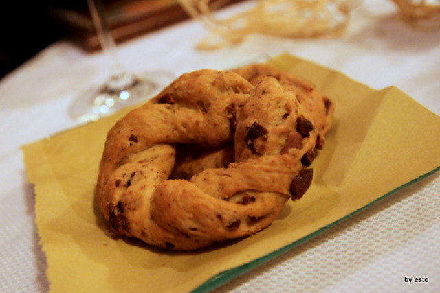 Benvenuto con il tarallo napoletano, sugna, mandorle e pepe.