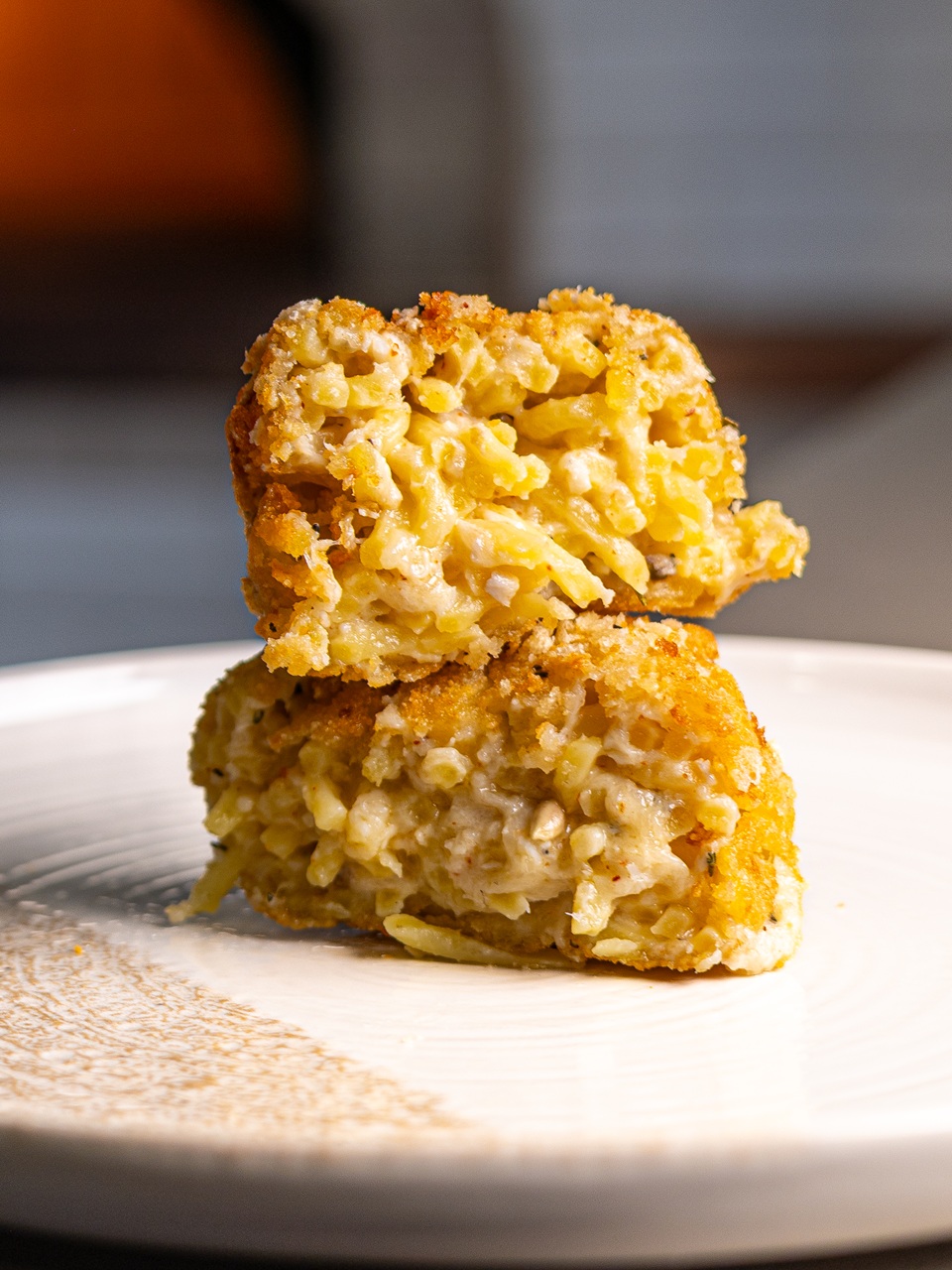 Questa preparazione si collega alla tradizione della cucina romano-giudaica, in particolare alla ricetta di un primo piatto tramandata a Raoul dai suoi nonni, che lui ha deciso di reinterpretare trasformandola in un fritto per aggiungere croccantezza e gusto, ma mantenendo intatta la leggerezza che la contraddistingue. Questa ricetta incarna perfettamente la filosofia del suo locale: quella di riportare in vita ricette tradizionali, antiche e talvolta dimenticate, per farle risplendere ancora una volta sulle tavole del quartiere.