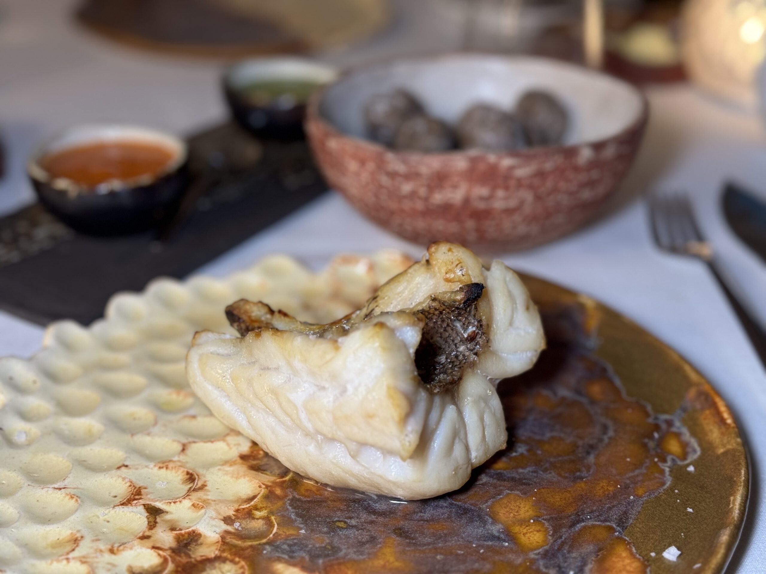 Un altro punto forte sono i carabinero, gamberi rossi dal sapore intenso e inconfondibile, accostati a un arroz che offre una versione moderna e raffinata del piatto più conosciuto della cucina spagnola. Fra gli antipasti, piatti esteticamente belli e preparati con una tecnica impeccabile che mira a conservare e valorizzare il pescato senza stravolgerlo. Prima ancora dei piatti principali, l’accoglienza al tavolo racconta la cura del dettaglio. Il pane, fragrante e fatto in casa, è accompagnato da burro di Normandia e un olio extravergine italiano, un mix semplice ma ricco di gusto.