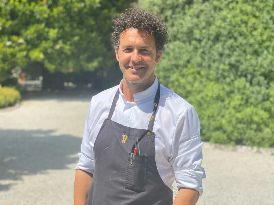 Marchigiano, classe 1973 di Ancona, tanta gavetta, di quella vera. L’Enoteca Pinchiorri, Alain Ducasse, Pierre Gagnaire, Seiji Yamamoto, un passaggio a El Bulli di Ferran Adria, Andoni Luis Aduriz e Pascal Barbot. Un giramondo che decide di tornare in Italia nel 2001 e diventa il sous chef di Pino Lavarra al Rossellinis di Ravello, dell’allora Palazzo Sasso, oggi Palazzo Avino. Nel 2003 la grande occasione, quella di avere una cucina tutta sua, quella del Grand Hotel di Villa Feltrinelli. Una cucina bellissima, disegnata direttamente da lui, super organizzata. In tutta la cucina dominano tre colori, non ci sono altri colori presenti. Il nero che simboleggia l’eleganza, l’acciaio che simboleggia il rigore, il verde per la chiara propensione dello chef nella valorizzazione del mondo vegetale.