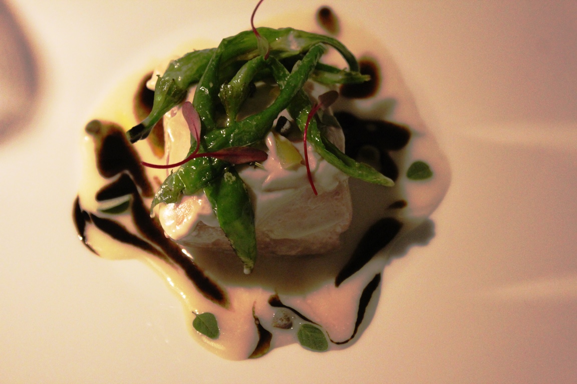 - Ricciola cotta lentamente in infuso di origano fresco e capperi, limone sfusato amalfitano e friggitelli