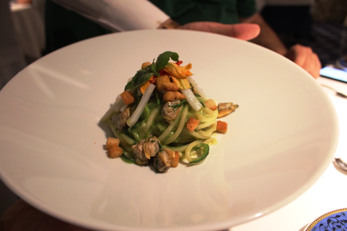 Un esempio di fusion è il piatto delle linguine alle ostriche, perfetto, intenso, di grande intensità gustativa.