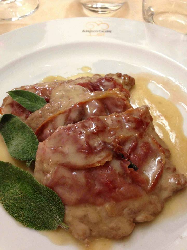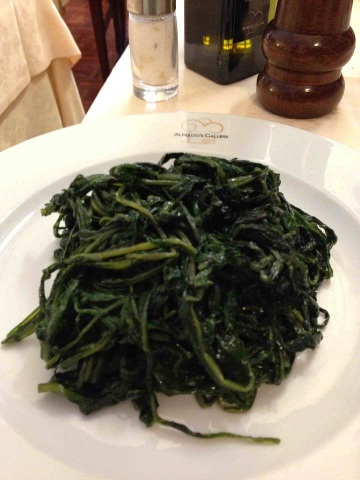 D’altro canto, si sa: il pubblico prevalentemente di stranieri apprezza l’attenzione al marchio e alla firma. Il servizio è molto professionale, curato. E la stessa storia delle fettuccine Alfredo, recitata a memoria, sempre uguale da più di un secolo, viene ripetuta, se richiesta, con una incredibile cordialità non monocorde. Già. Le famosissime fettuccine all’Alfredo, doppio burro e parmigiano. Doppio perchè il burro si versa nel piatto del servizio sia prima della pasta che dopo. Poi si ricoprono le fettuccine di abbondante parmigiano e, aiutati da un po’ d’acqua di cottura nel piatto ovale del servizio, si mantecano direttamente a tavola.