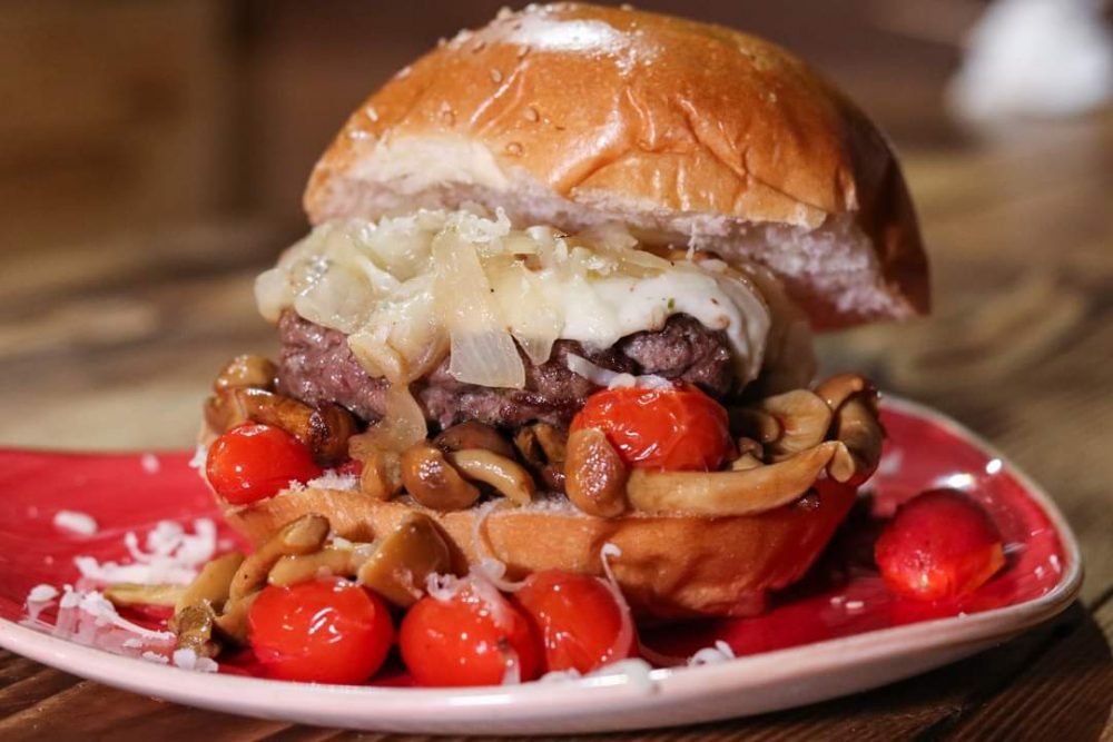 STORY FOOD & DRINK – Vesuvio con hamburger di Black Angus, cipolla caramellata, funghi, pomodorino del piennolo e formaggio di bufala
