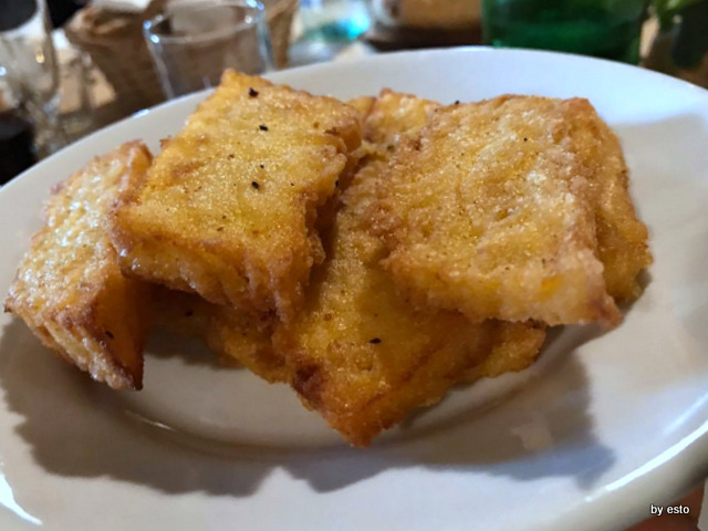 Farenata con pecorino e pepe, fritta nella ‘nzogna. Altrove detta polenta.