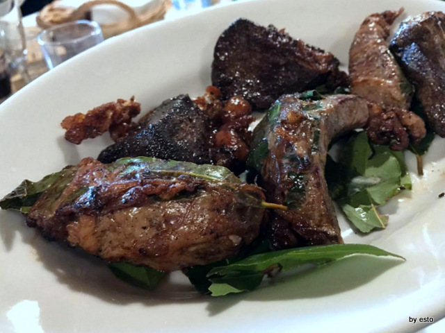 Fecatielli con rezza, fegatini con l’omento, e lauro fritti