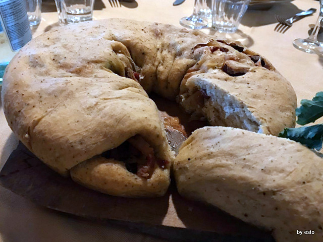 Esordio con il casatiello ‘nzogna cicoli e pepe.