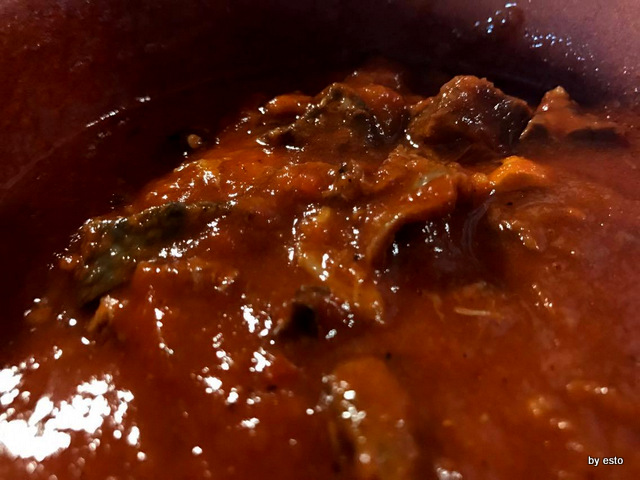 Zuffritto o zuppa forte, quinto quarto di maiale in salsa piccante.