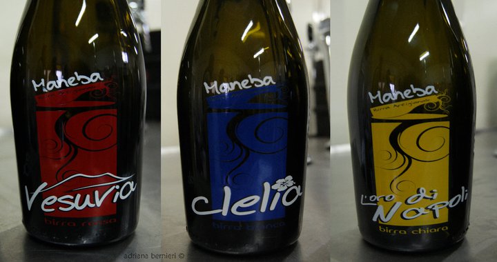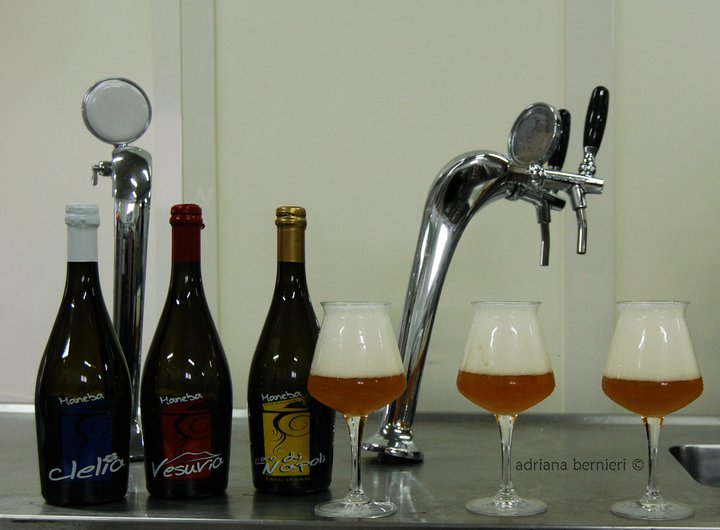 L’Oro di Napoli (4.8 gradi alcolici) ispirata alla raccolta di racconti di Giuseppe Marotta, è una blonde “ale” color giallo ambrato, il bicchiere sembra davvero contenere l’oro per il colore della birra. Si avverte un retrogusto amaro molto piacevole, all’olfatto c’è un sentore di agrumi che caratterizzano le birre chiare di Maneba. E’ una birra molto versatile potrebbe abbinarsi bene con un primo piatto dai sapori decisi e anche con un dessert a base di cioccolato. Della stessa famiglia “ale”, però di tradizione belga: Vesuvia (7.2 gradi alcolici), nome che nasce per via del colore rossastro della birra, che rimanda alla lava del vicino Vesuvio. E’ aromatizzata al coriandolo, all’olfatto si avverte il profumo del malto tostato, al gusto risulta essere una rossa ben strutturata con leggeri sentori di caramello.