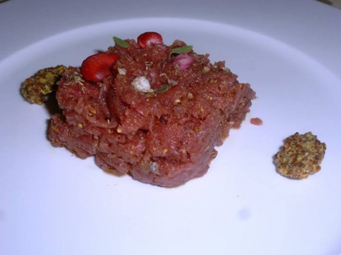 Fantasia e grande qualità per gli antipasti: forte richiamo calabrese per la sfogliatella croccante con salsa di sardella e pistacchi; saporito e territoriale il battuto di podolica con mostarda, tartufo e fiori eduli.