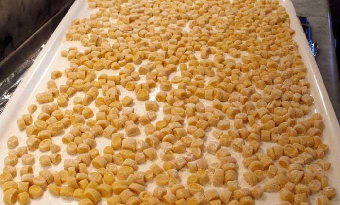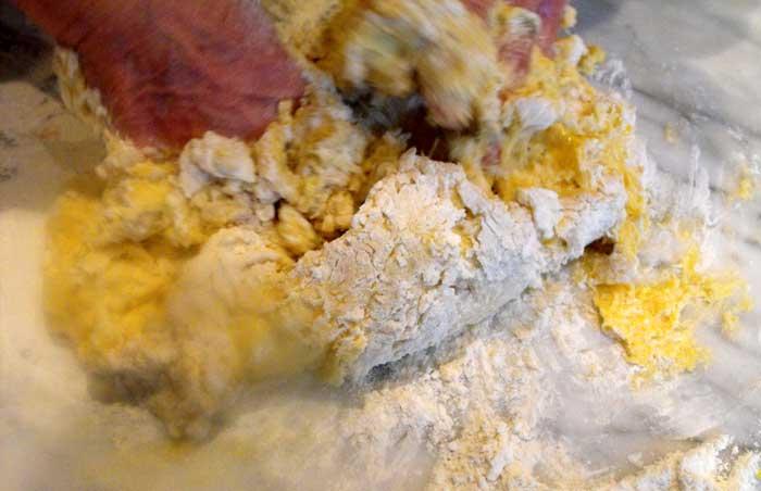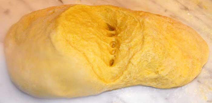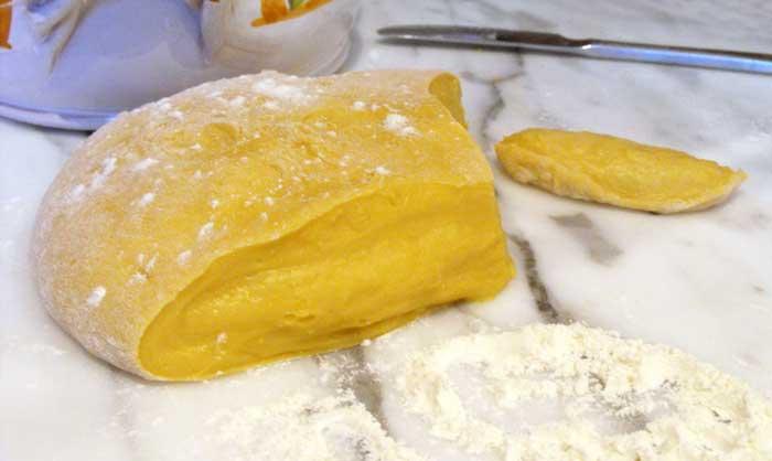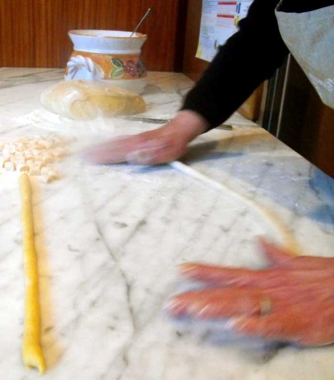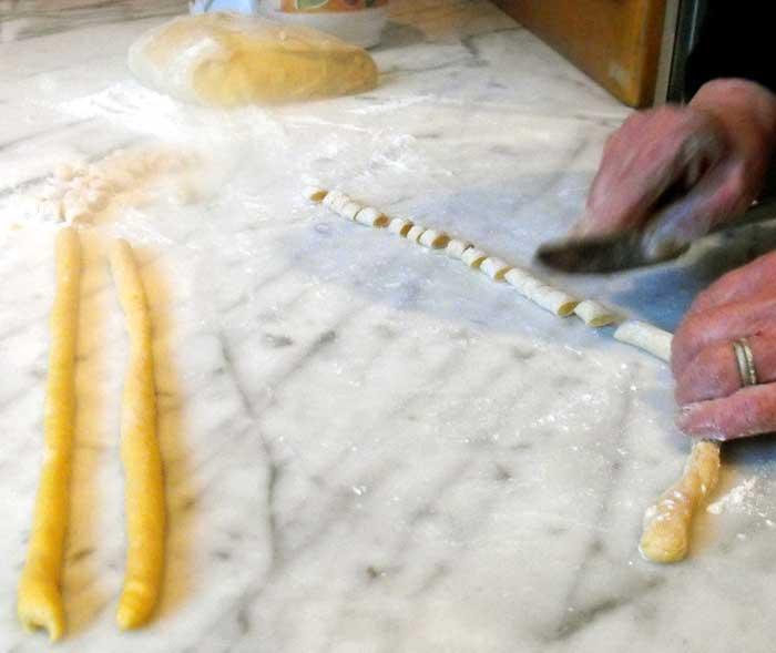 Lavorare bene l’impasto che dovrà risultare compatto e ben amalgamato; la prova di una corretta esecuzione è data, all’apertura della pasta, dalla formazione di alcune occhiature, regolari e di dimensione media e grande; «vedi, la pasta deve diventare così!» le parole della “cuoca”.