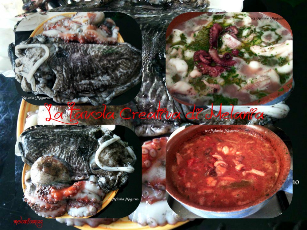 Consiglio: Lavate bene e lasciate in una ciotola con acqua la seppia e il polipo, metteteli poi a cuocere "grondanti" d'acqua