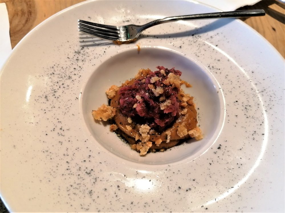 Suite69 – crema di patate dolci della Sila, fassona, amaretti e pepe