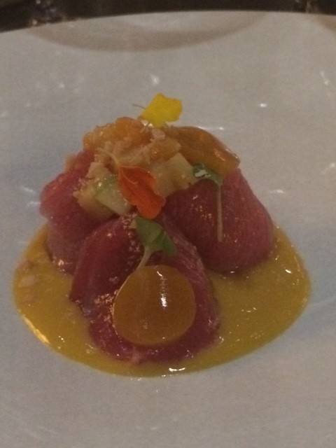 Sushi B, Carpaccio di tonno con mango e salsa ai frutti tropicali