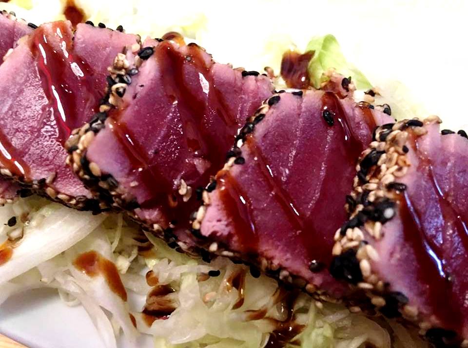 Il primo l’N.M.J. Sciroppo di Lemongrass, Menta, Grand Marnier, Nikka Blended e Nebulizzazione di Cynar. Abbinato ad una delicata Tataki di Tonno.
