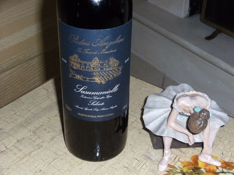 E’ il Susumaniello appunto, riscoperto e valorizzato vitigno apuliano, che ho preso in considerazione per la mia degustazione. Nella fattispecie, trattasi di un’etichetta denominata Susumaniello Igt Salento 2012. Il vino ha fatto soltanto acciaio per pochi mesi e la gradazione alcolica è arrivata a toccare i 14° C.