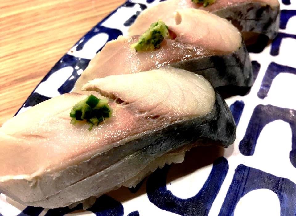 Nigiri. Otoro, Ricciola, Engawa e per concludere il simbolo. Lo sgombro. Marinato e dunque serivito con un dot di limone e cipollotto. Riso lievemente da rivedere. L’esperimento del nishiki a temperatura corporea è geniale ma nel caso di specie i gradi di servizio erano decisamente alti, rendendo il riso troppo caldo. Fattura e precisione inappuntabili. Tanto cuore nelle presentazioni, i nuovi piatti di service nati da alcuni schizzi di Stefano Parisio, ricordano il mare nelle sue diverse profondità e tonalità di fondale.