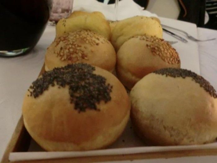 C’è attenzione per l’olio, il vino, i pani, i grissini. Tutta la cornice molto italiana alla quale però non sapremmo rinunciare.