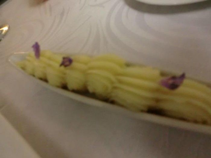 Il puré è sicuramente più rustico di quello di Robuchon-Vizzarì, ma la patata ha del suo e con la carne si sposa alla perfezione.