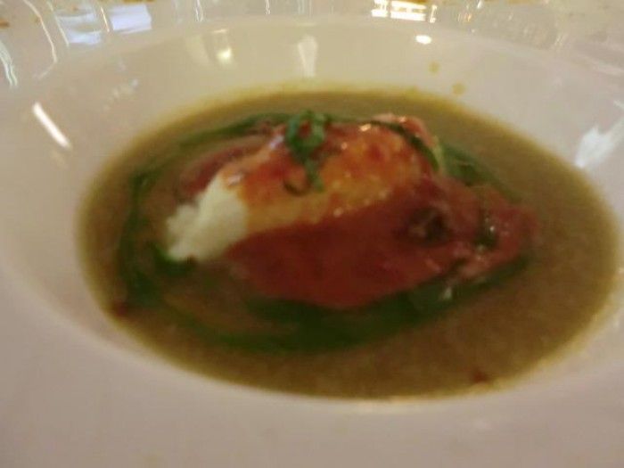 Paradossalmente il benvenuto è stato, a mio avviso, l’unico passo falso della serata. Il risultato finale è conseguito dall’acidità, ma passa attraverso il tunnel di troppi e confusi ingredienti.