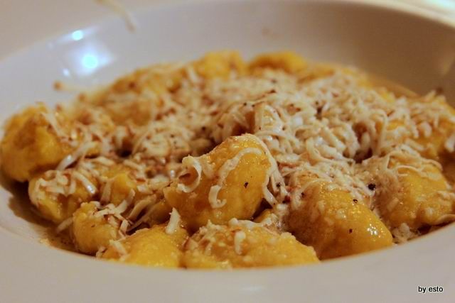 Gli gnocchi di zucca con ricotta affumicata sono tenerissimi e ben equilibrati. Il sentore fumè è lieve e per nulla dolce è la zucca.