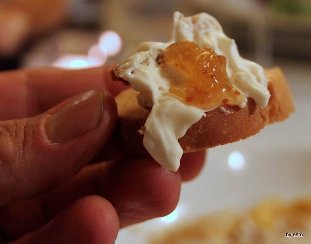 Antipasto di gorgonzola e fichi. Molto buona e gustosa la crema del formaggio e la confettura dei fichi. Dà freschezza l’erbetta che accompagna.