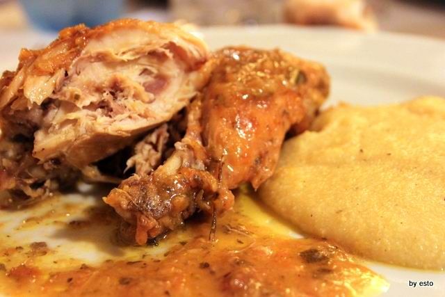 Un trancio di coniglio in umido lasciato andare lungamente con carota, cipollotti e aromi si dimostra succulento.