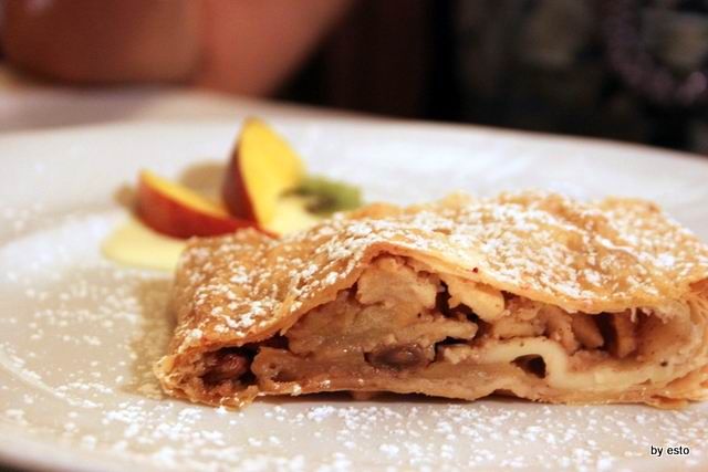 Ancora qualche tocchetto di formaggio Montasio nove mesi insieme alla crema di gorgonzola da bis e poi via verso un soave strudel.