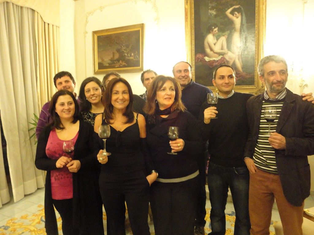 A darci il benvenuto, naturalmente, l'”esplosiva” padrona di casa, la presidente del consorzio Maura Sarno. Siamo in una villa prestigiosa situata sul cucuzzolo della collina che domina, prima la rinnovata sede della facoltà di Enologia, e poi tutta la città. Clima delle grandi occasioni, bellissima gente, grandissimi produttori e vini eccezionali. Non da meno il menù della serata : cannelloni ricotta porcini e tartufo, nidini al forno, arista di maiale al latte, spezzatino di podolica all’aglianico, broccoletti saltati, semi pourea di patate, e per finire profiteroles al cioccolato.
