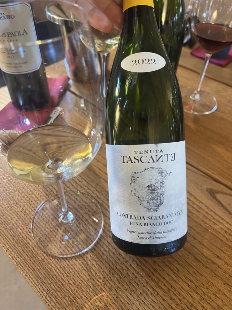 Etna Bianco “Sciaranova” 2022 è un vino che non ha paura di manifestarsi in tutta la sua maestosità, è una grande prova di convivenza tra il Carricante ed il legno. Il naso – agrumato e molto minerale – cede il passo ad una bocca ricca di durezze, quali acidità e sapidità. Da evidenziare il ritorno di limone di Sicilia che si ha con la retronasale. Contrada Grasà merita un discorso a parte, dato che è protagonista di uno dei progetti pensati dal direttore commerciale Leonardo Vallone. L’interesse per questa zona deriva dal suolo, che è un misto tra il tipico scheletro etneo ed il flysch di Capo d’Orlando. Qui, oltre al Carricante, è stato piantato anche il Nerello: ambedue gli impianti risalgono a soli 2 anni fa. L’ingresso in commercio dell’etichetta è previsto per il 2030. E chissà che in futuro non ci sia spazio per un’altra struttura, attualmente la priorità tocca a Sciaranova.