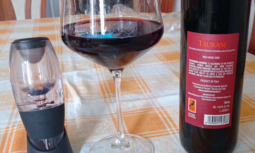 Ecco qui un valido archetipo rappresentato da una bottiglia scovata nella mia cantina e che ho stappato di proposito per il pranzo domenicale: Taurasi Docg 2008 Contrade di Taurasi Lonardo.