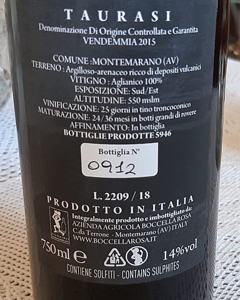 Controetichetta Taurasi Docg 2015 Boccella Rosa
