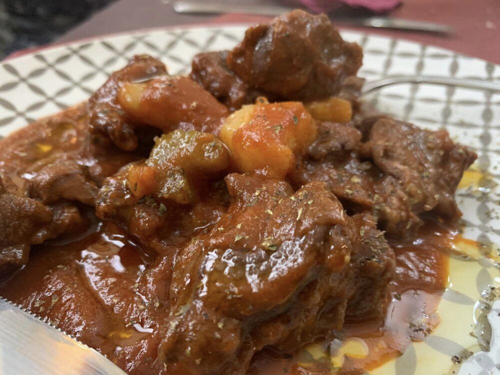 Tra i secondi piatti, un buono spezzatino di cinghiale, specialità della casa.