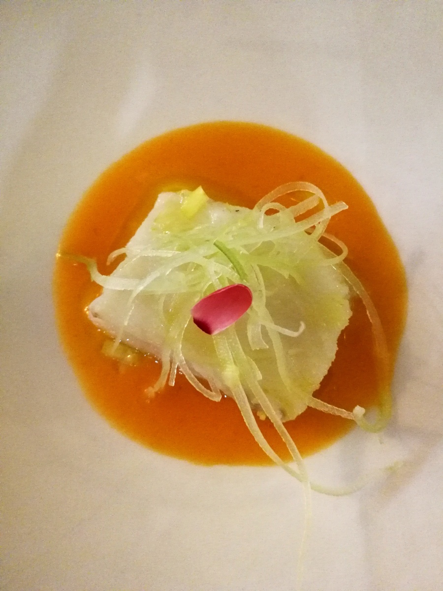 Diritto di nomina per i suoi tagliolini verdi. Il fresco ed intenso sentore erbaceo era perfettamente bilanciato al crudo di gamberi rossi di Mazara, regalando un assaggio giovane e nuovo.