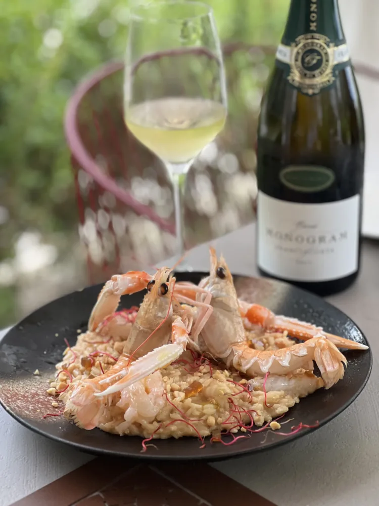 La freschezza dello zenzero e del bergamotto crea un contrasto meraviglioso con la dolcezza dello scampo. Un’opera d’arte di buon gusto e raffinatezza.