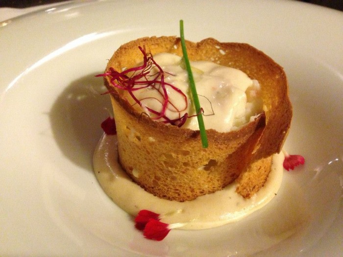 La Locanda del Borgo, baccalà mantecato all’olio di oliva extravergine su maionese di cipolle di Alife