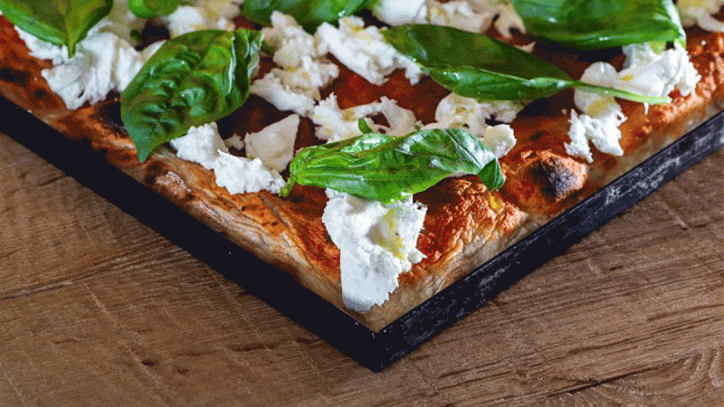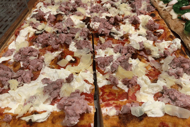 Dal piccolo locale con giusto sei sette sedute per consumare sul posto, si passa ad un secondo locale molto più grande, con maggiore disponibilità (45 posti) per mangiare al volo e scegliere una birra artigianale o un calice di vino dalla lista rigorosamente di naturali. Il format è invariato. Pizze in teglia di stile romano farcite di tanti e abbondanti ingredienti di stagione. L’impasto ha il colore ambrato che conferisce una percentuale di farina tipo 1 e al morso risulta croccante in superficie, morbida all’interno con una facilità di masticazione tipica di un impasto ben realizzato in tutte le sue fasi, dal gusto inaspettatamente delicato ed elegante. Bella golosa la pizza alla carbonara, fresca e profonda quella con polpo, senape selvatica e crema di mandorle. Si ragiona molto sul vegetale e si rinforza, forse anche troppo, con proteine animali. Il servizio è libero, si potrà scegliere dal consumo sul posto e il take away. Ben rodato anche il servizio di consegne a domicilio a cui questo tipo di pizza si presta benissimo.