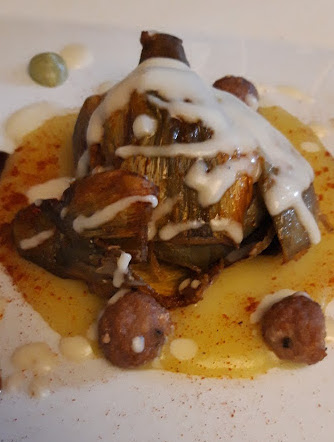 Tenuta Antica – carciofo dorato e fritto con patate, polpette di maialino, pecorino e salsa barbecue