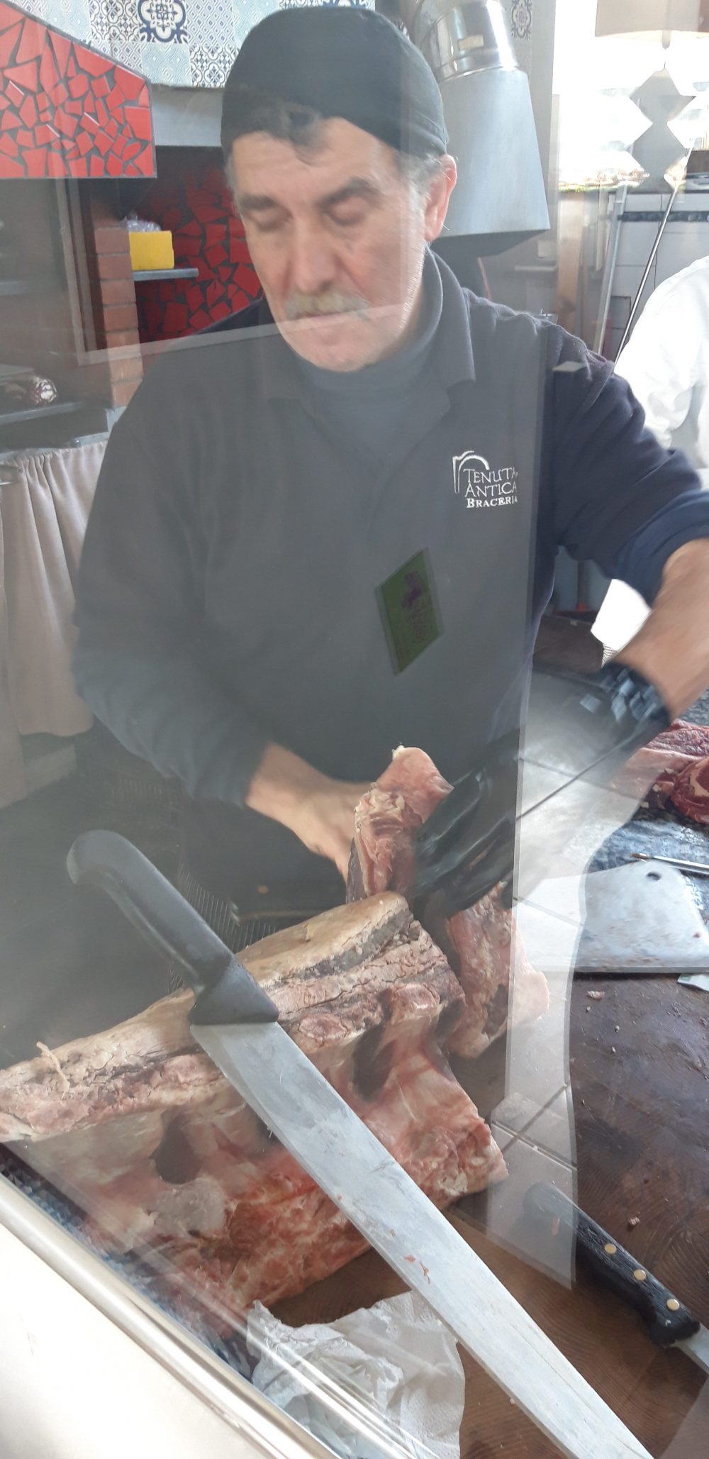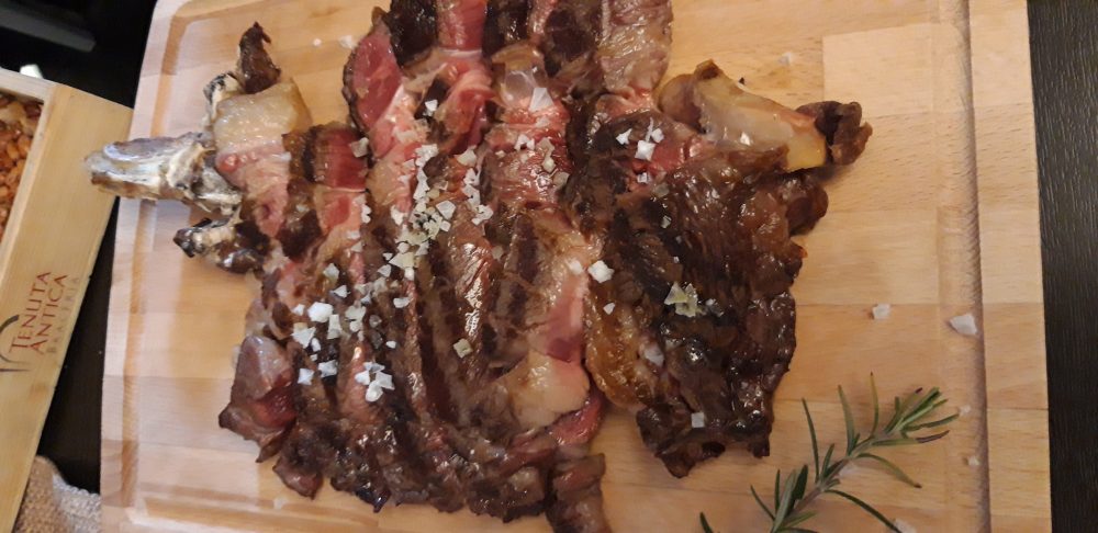 Alla Tenuta Antica, in una atmosfera rilassante, protagonista è senza dubbio la carne, in bella vista all’ingresso con l’addetto al taglio.
